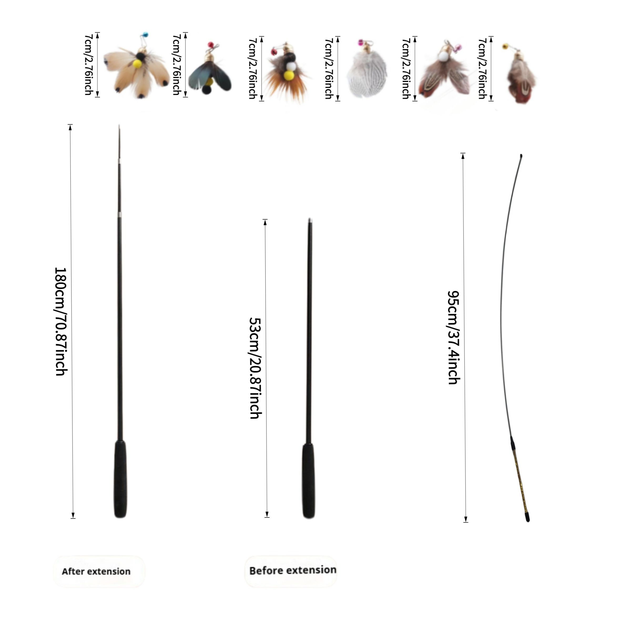【Unique Interchangeable Heads】: This set features six interchangeable insect heads, allowing your cat to enjoy varied play experiences.