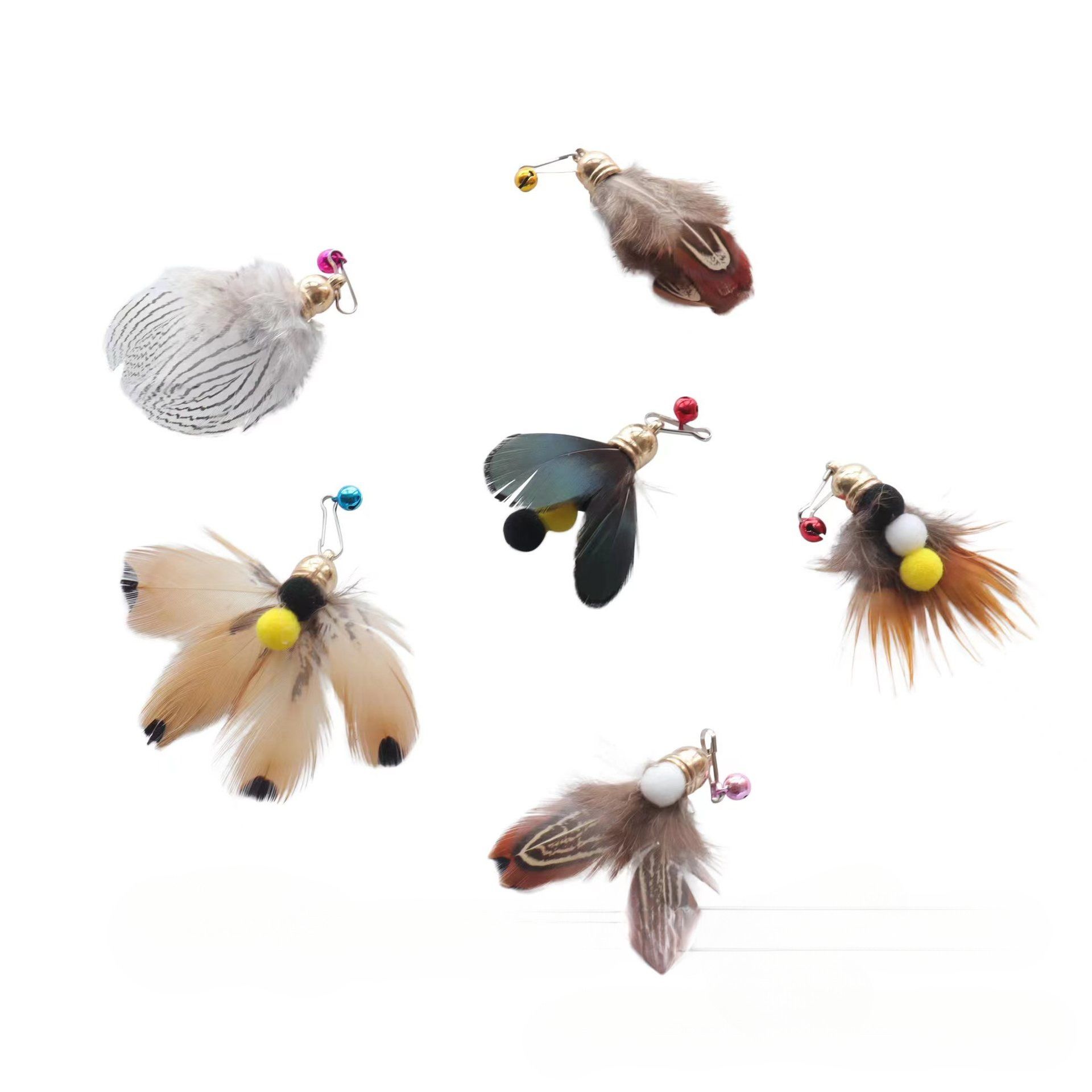 Pet Gift Set, Six-Piece Replaceable Insect Head Accessories with Bell Feathers, Suitable for Indoor Cat Play and Exercise, Release Cat Nature